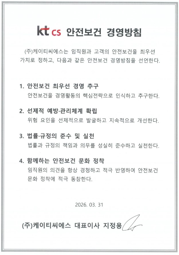 2026년 kt cs 안전보건 경영방침 및 목표